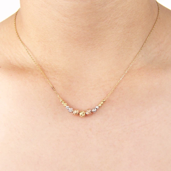 Add a touch of sophistication with the Sophia 3C Beads Necklace. Crafted in gold, this necklace features three elegant strands of polished beads, creating a layered look that effortlessly enhances any outfit. Perfect for both casual and formal occasions, it’s a versatile piece that combines timeless style with modern charm.