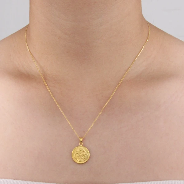 The Sophia Lucky Dragon Pendant is a meaningful symbol of luck and positivity. Made in 18K Saudi Yellow Gold, this elegant pendant captures the beauty and power of the dragon in a refined design.