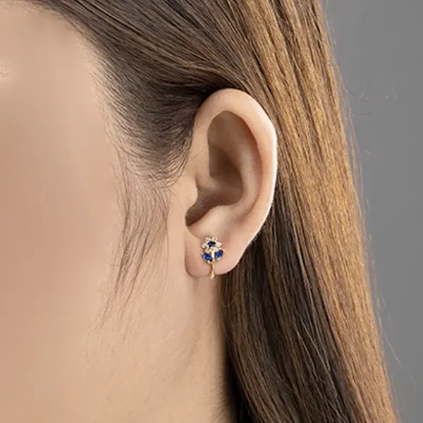 Embrace elegance and vibrancy with the Sophia Blossom Earrings. A luxurious 18k yellow gold, these captivating hoops绽放 (zhàn fàng - bloom) with the brilliance of colorful cubic zirconia. Imagine the soft gleam of the gold catching the light, as a cascade of color dances around your ears.
