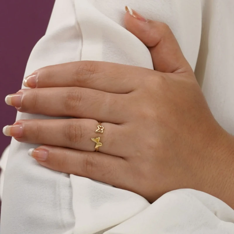 Elevate your style with the Sophia Morpho ring, a stunning 18k gold statement piece inspired by the iridescent beauty of the Morpho butterfly.