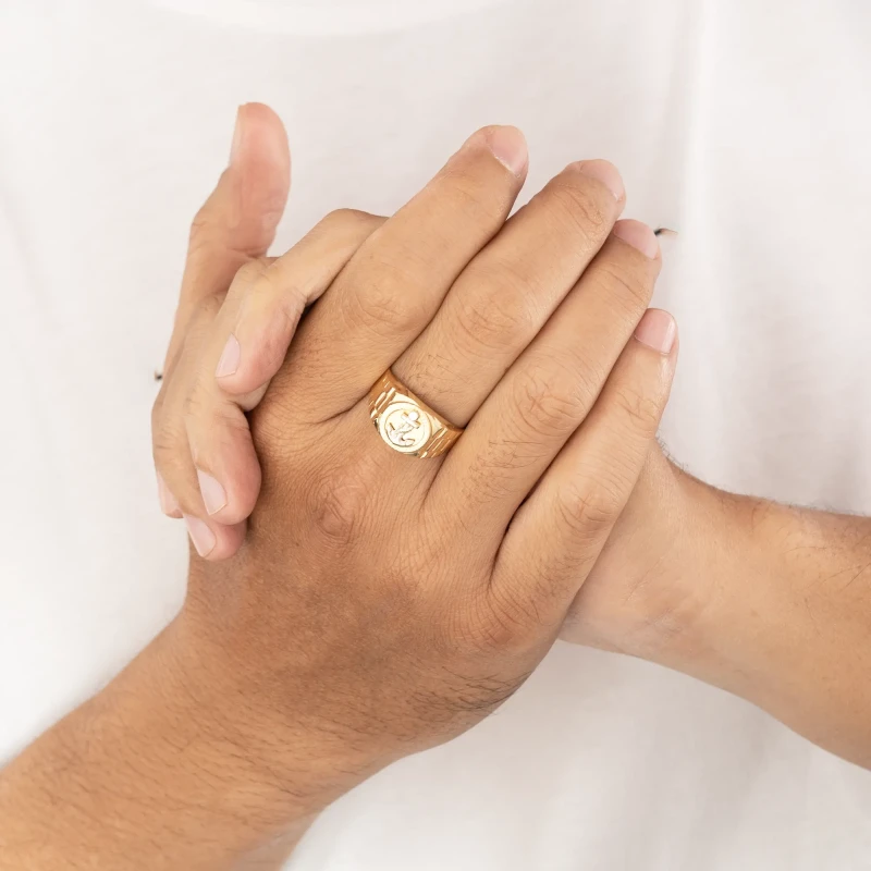 Crafted in solid gold, the Sophia Anchor II Men’s Ring embodies strength, stability, and timeless character. Designed with a bold anchor motif, it serves as a powerful reminder to stay grounded through life’s tides. Perfect for the man who values purpose and perseverance, this ring blends refined craftsmanship with symbolic depth—making it more than just an accessory, but a statement of steadfast spirit.