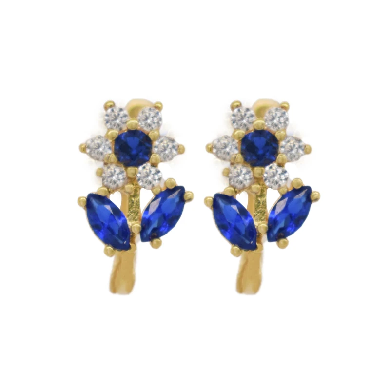 Embrace elegance and vibrancy with the Sophia Blossom Earrings. A luxurious 18k yellow gold, these captivating hoops绽放 (zhàn fàng - bloom) with the brilliance of colorful cubic zirconia. Imagine the soft gleam of the gold catching the light, as a cascade of color dances around your ears.