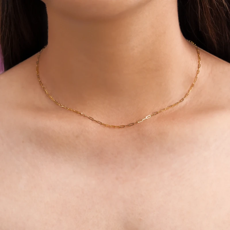 Redefine modern elegance with the Sophia Paperclip Necklace — a stunning 18K yellow gold piece that blends simplicity with sophistication. Its sleek, interlocking links create a refined statement that transitions effortlessly from day to night. Whether paired with office attire, evening wear, or casual weekend looks, this versatile necklace adds a touch of golden confidence to every occasion.