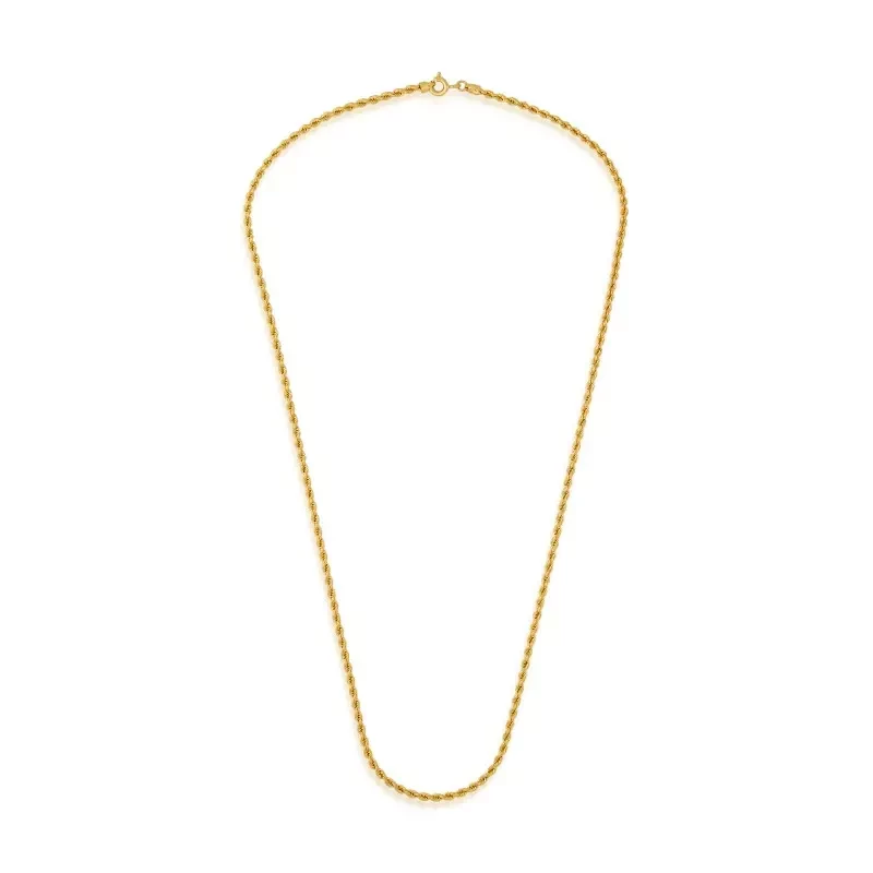 Add a touch of timeless sophistication to your style with the Sophia Rope II Chain Necklace. This 18-inch necklace, meticulously crafted from lustrous Chinese gold, features a classic rope design that exudes elegance. Its versatile style makes it a perfect foundation for layering or a stunning standalone piece. Adorn your neckline with this symbol of refined luxury.