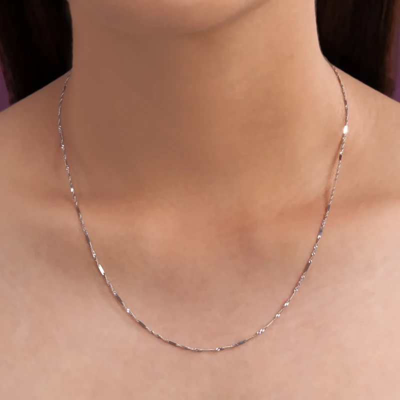Modern elegance meets timeless charm in the Sophia WG Alt Bar Necklace. Crafted in luminous white gold, its alternating bar design creates a sleek, contemporary silhouette that catches the light with every movement. Perfect for both everyday sophistication and special occasions, this piece adds effortless polish to any look.