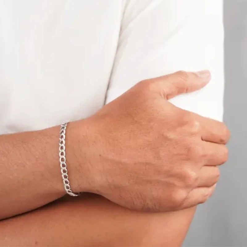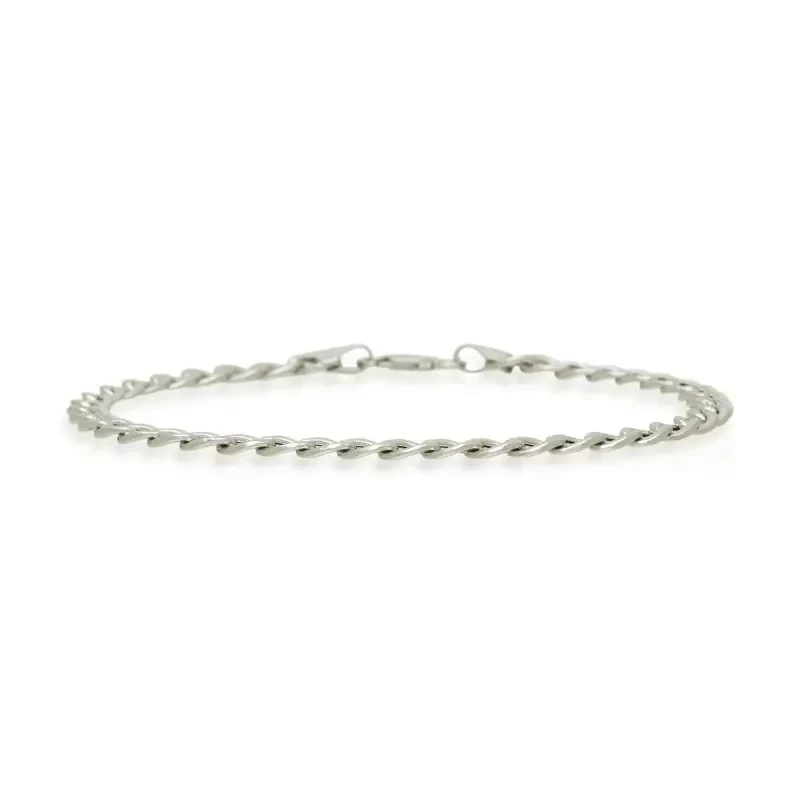 Indulge in modern luxury with the Sophia White Gold Curblink Chain Bracelet. This bracelet's striking curved link design, rendered in lustrous white gold, offers a sophisticated and eye-catching aesthetic. Its refined elegance makes it a versatile piece, perfect for both everyday sophistication and special occasions. Adorn your wrist with this symbol of contemporary grace.